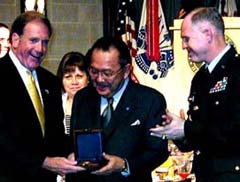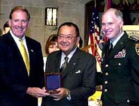 Senator Inouye proudly displays his Thayer Award medal.