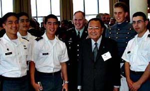 Senator Inouye enjoys the company of cadets.